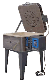 The Quatro 16 provides a square glass fusing kiln for individuals who need a kiln larger than 14.5″ x 14.5″ wide (Square 146GFE) but not as large as 18″ x 18″ wide (Square 186GFE). Glass firing kilns are used for fusing and forming glass shapes, precious metal clay, and heat-treating. 120-volt glass fusing and precious metal clay models are equipped with a lid element for the fusing segment of the glass firing and a body element for the ramping up, down, and annealing segments of the firing. A selector switch is on the electrical box to designate either the lid or body element to heat during the firing. Only one of the elements can be used at a time because of the limited power of 120 volts. If the selector switch remains in the neutral position, neither element will heat. Models come equipped with a pilot light, an 18” tall metal stand, a stainless steel jacket, and a Bartlett Instruments KilnStar digital controller.